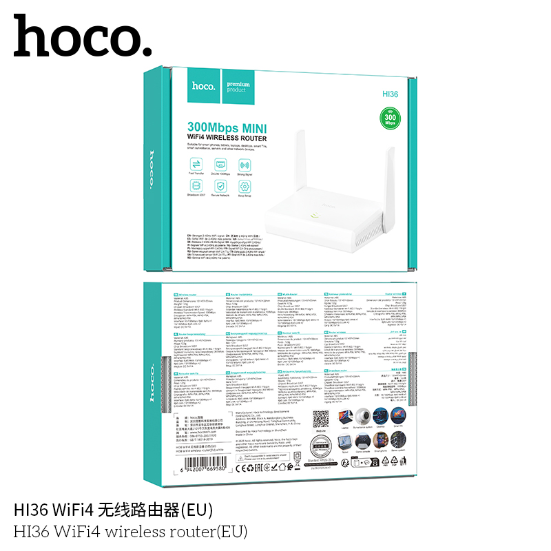 Bộ định tuyến không dây Hoco HI36 WiFi4 MỚI (EU)
