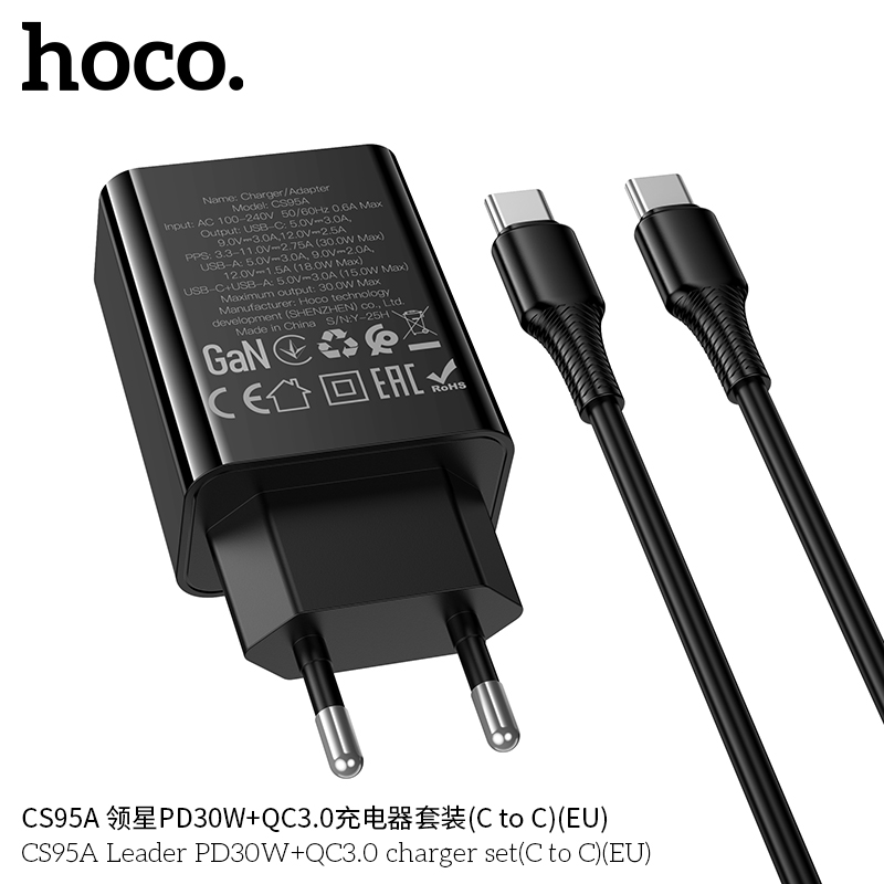 Bộ sạc Leader PD30W+QC3.0 Hoco CS95A MỚI (C sang C) (EU)