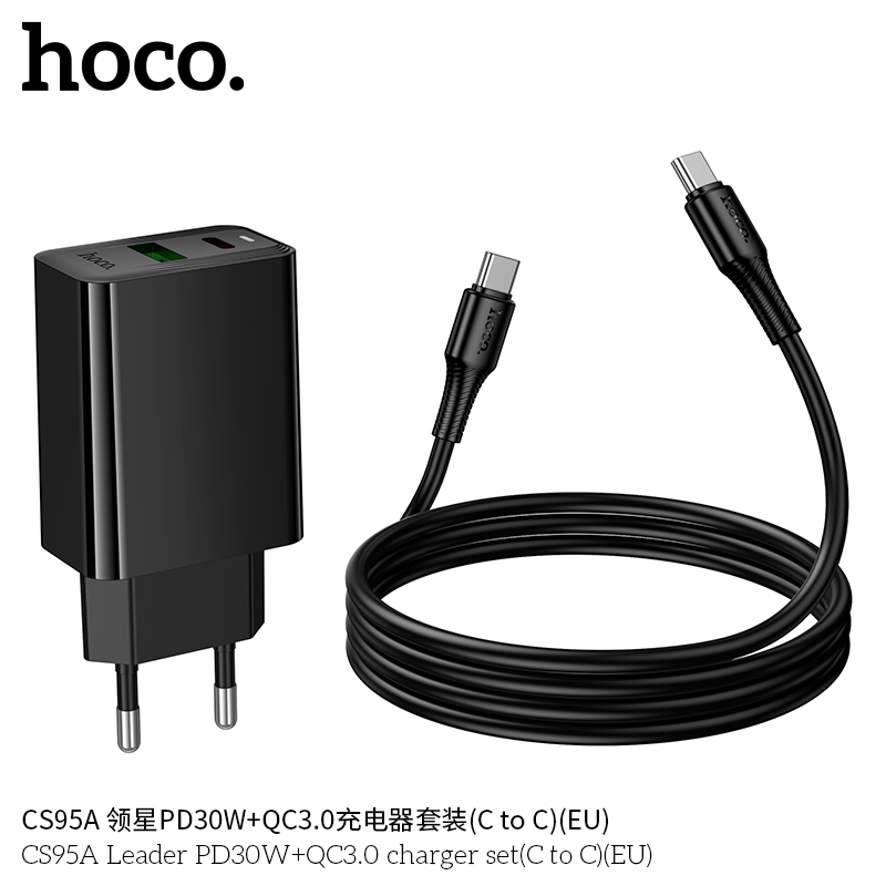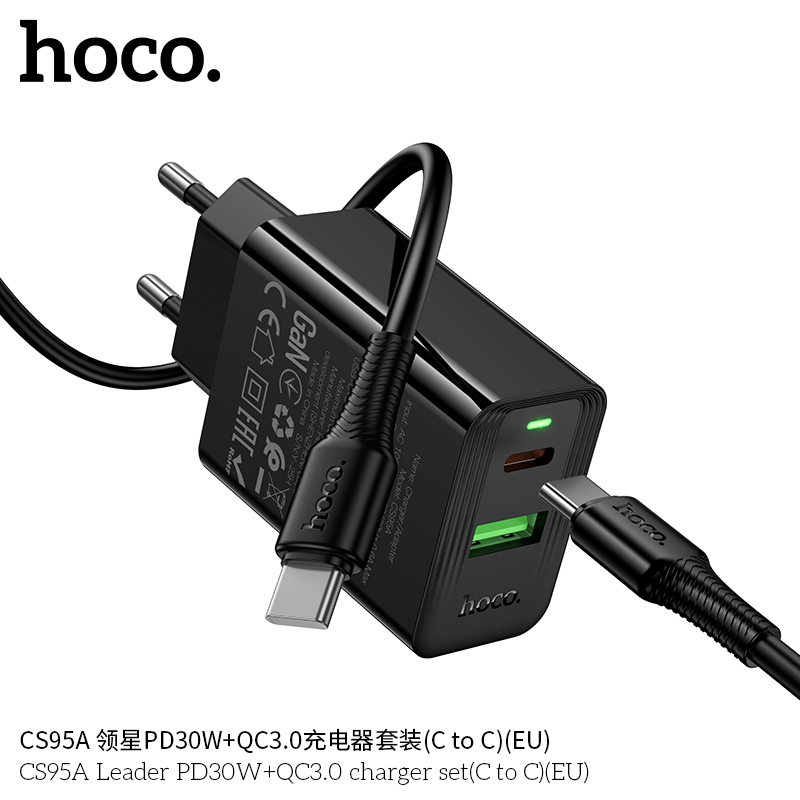 Mã sản phẩm: Bộ sạc Leader PD30W+QC3.0 Hoco CS95A MỚI (C sang C) (EU)
