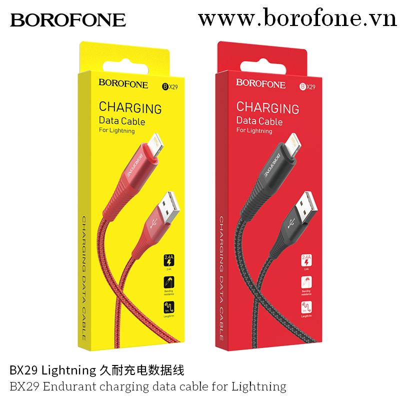 Cáp Sạc Truyền Dữ Liệu BOROFONE BX29 Cổng Lightning 2.4A 1M