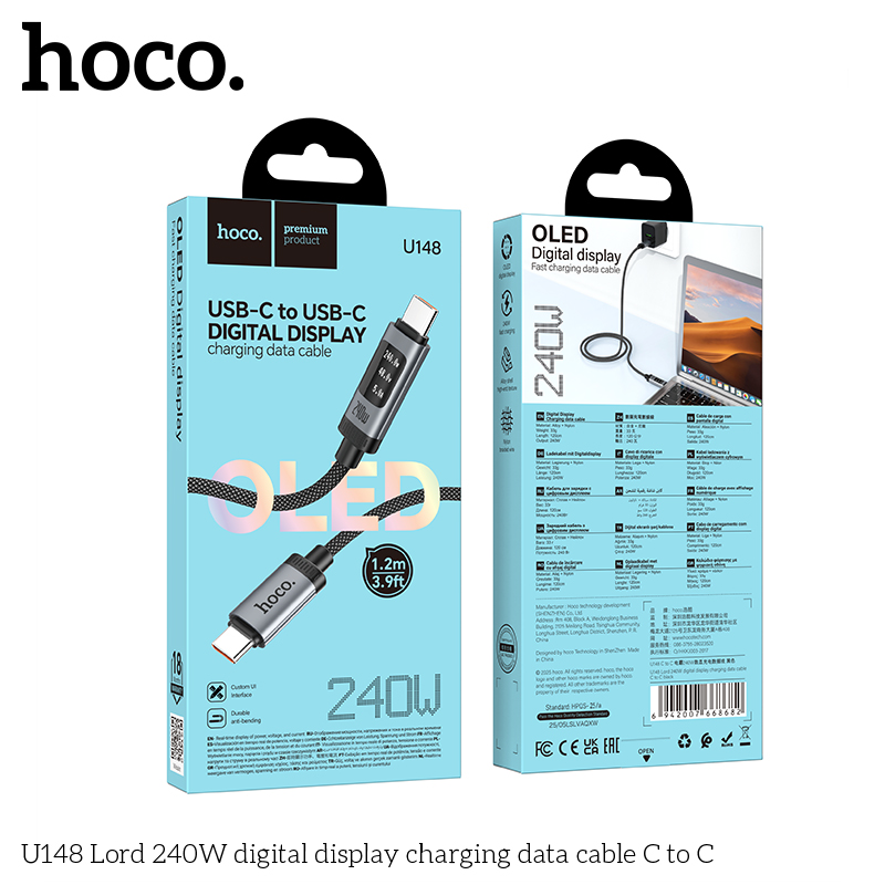 Cáp dữ liệu sạc màn hình kỹ thuật số Hoco U148 Lord 240W Type-C đến Type-C