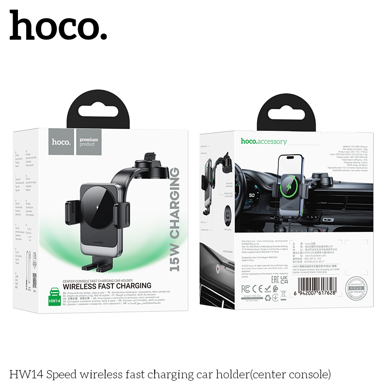 GIÁ ĐỠ XE HƠI HOCO HW16 SẠC NHANH KHÔNG DÂY TỪ TÍNH SPEED (BẢNG ĐIỀU KHIỂN TRUNG TÂM)
