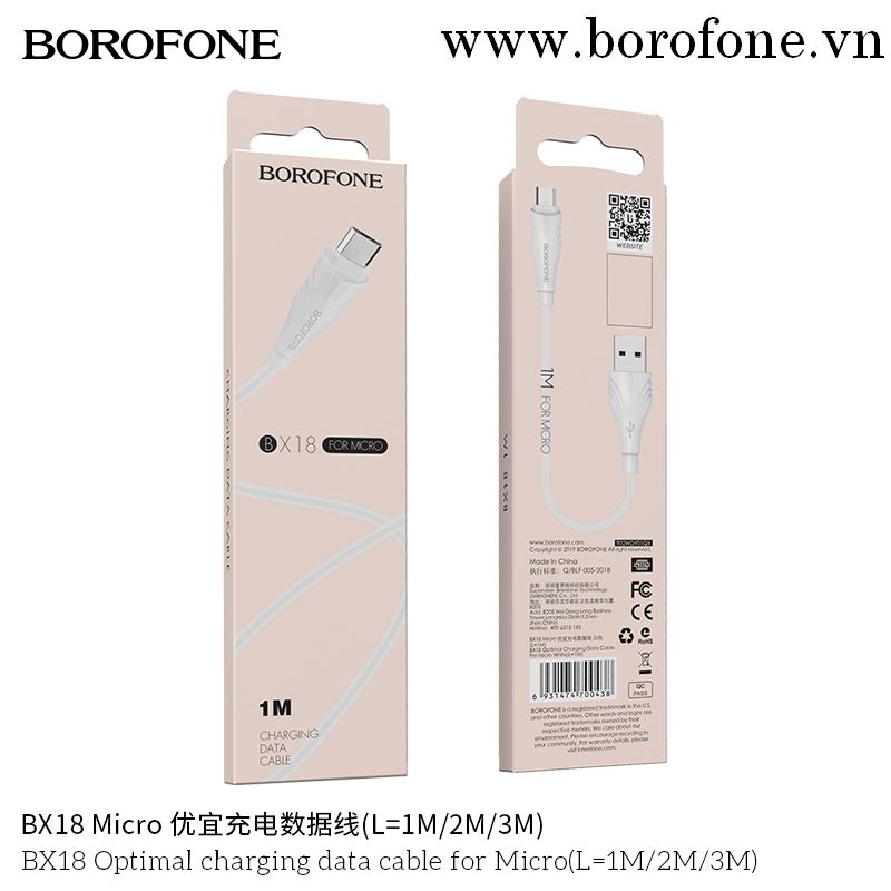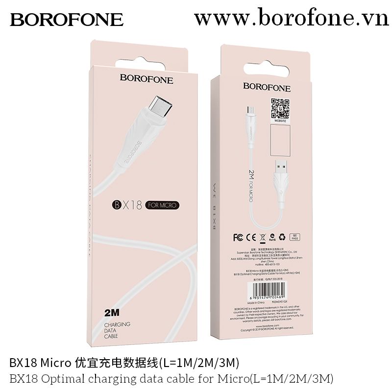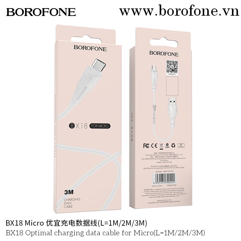 Cáp Sạc Truyền Dữ Liệu BOROFONE BX18 Cổng Micro 2A 3M