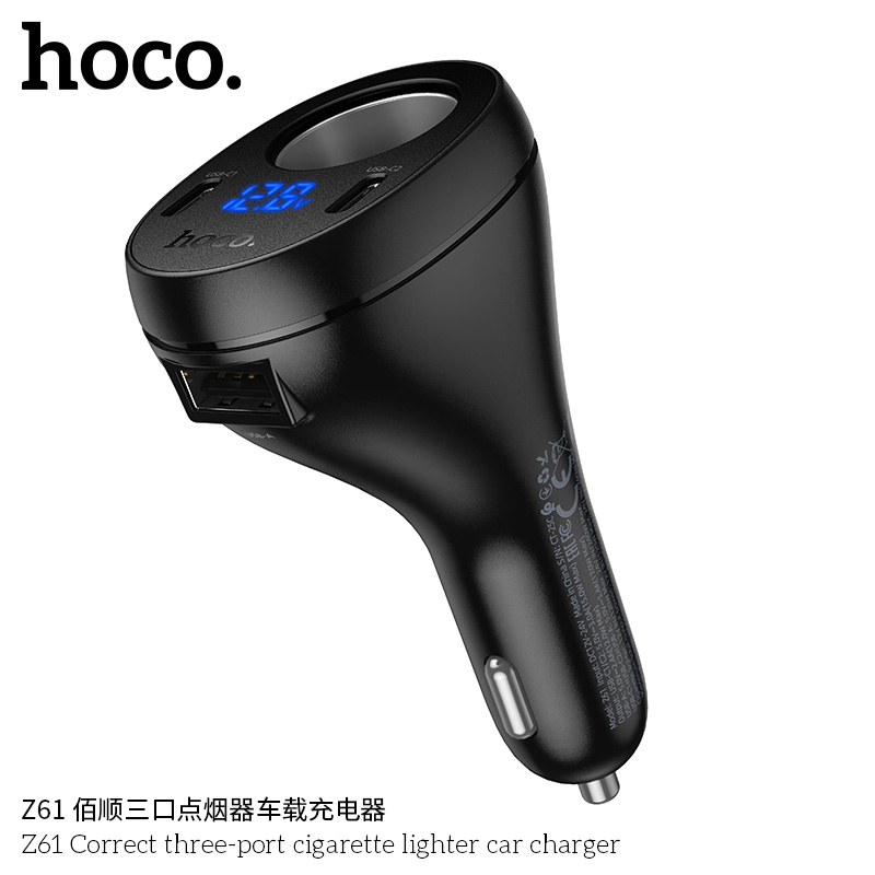 Tẩu sạc ô tô bật lửa ba cổng Hoco Z61 Correct