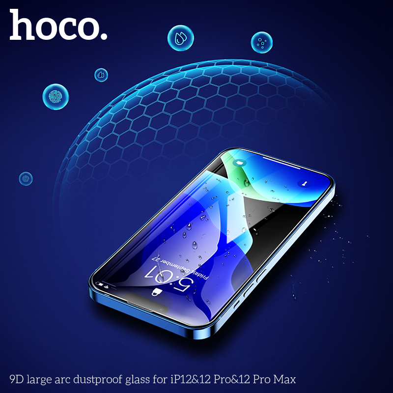 A34 Kính chống bụi Hoco vòng cung lớn 9D cho iP12/12 Pro