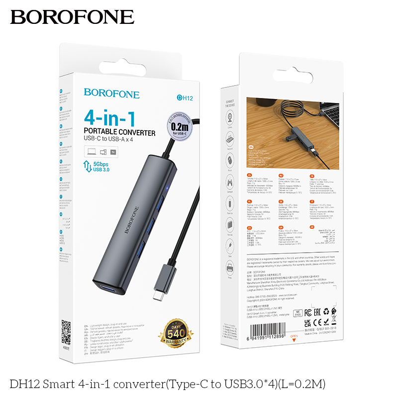 Bộ chuyển đổi thông minh Hoco 4 trong 1 DH12 (Type-C sang USB3.0*4)(L=0,2M)