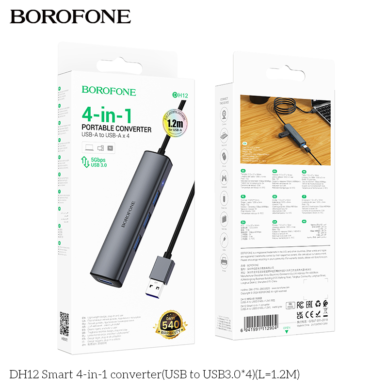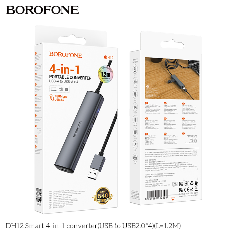 Bộ chuyển đổi thông minh Hoco 4 trong 1 DH12 (USB sang USB2.0*4)(L=1.2M)