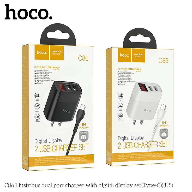 Bộ Sạc Nhanh Hoco C86 Type-c 2 Cổng USB Màn Hình Led 2.4A