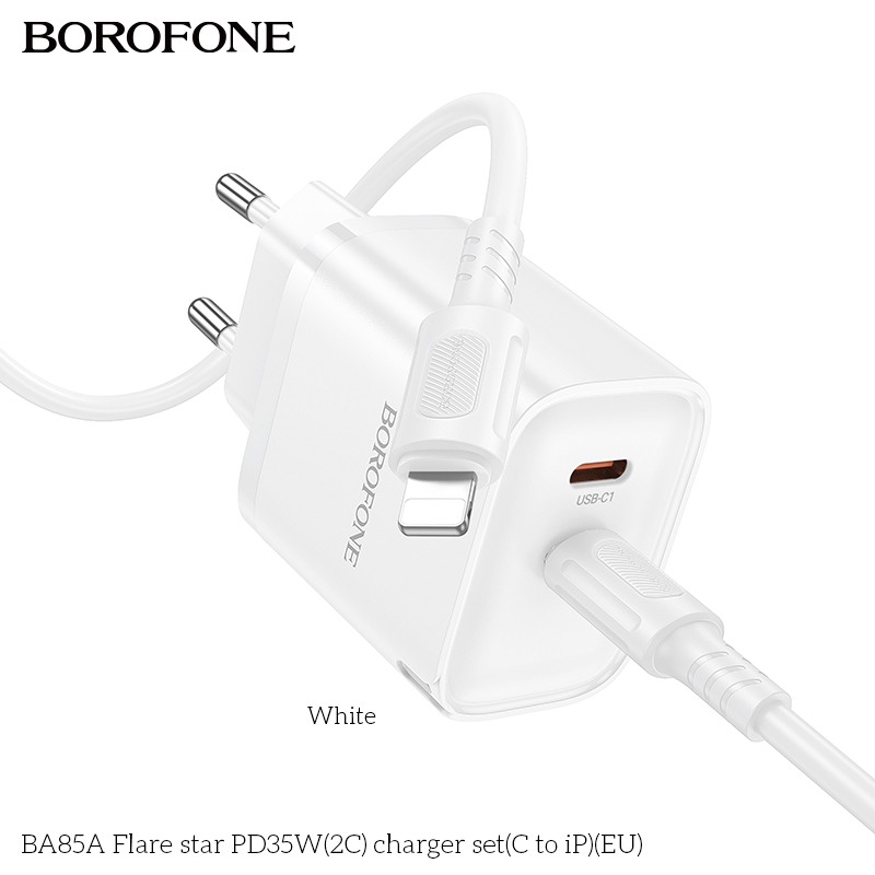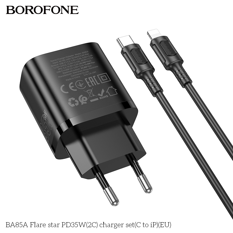 2. Đầu ra: USB-C1/C2: 35W (PD/QC/FCP/AFC); USB-C1+USB-C2=5V/3A 3. phích cắm EU 4. Kích thước: 78,8 * 42,3 * 30mm; Tổng trọng lượng: 74g 5. Lắp cáp sạc nhanh 1m C to iP