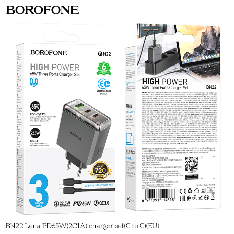 Bộ sạc BN22 PD65W(2C1A)(C to C)(EU)
