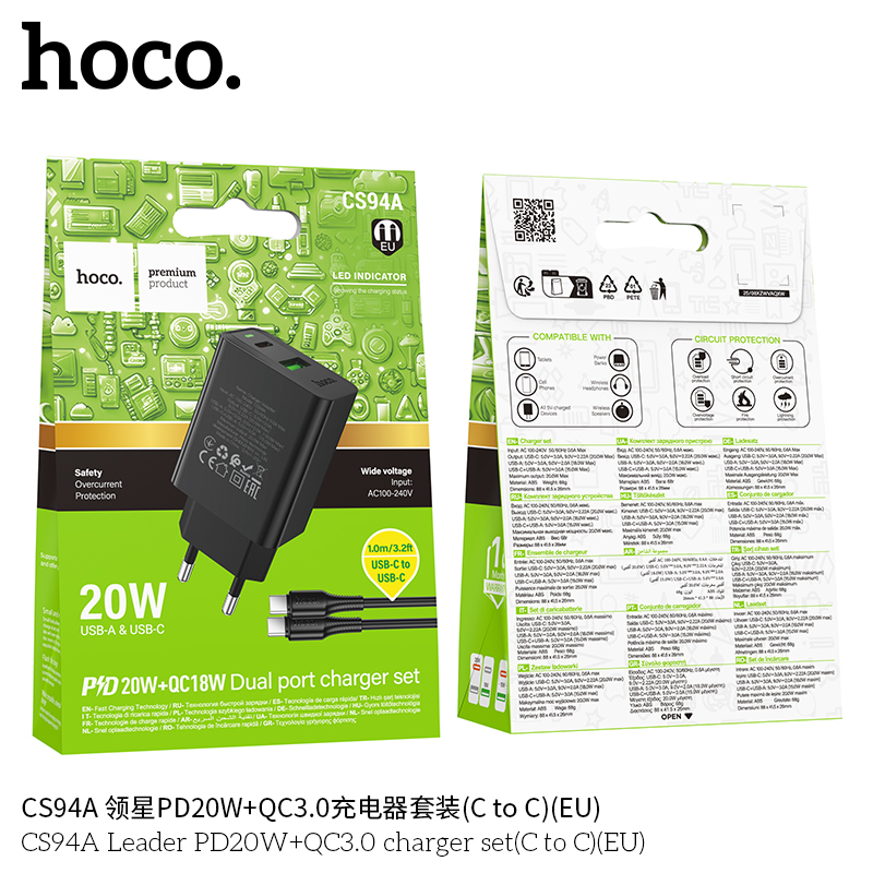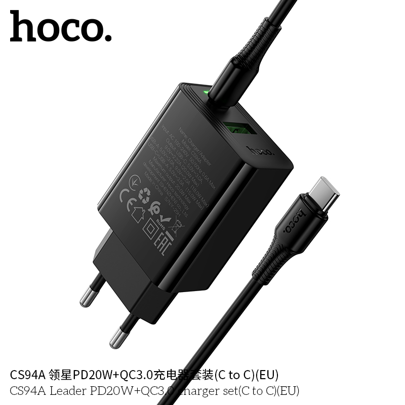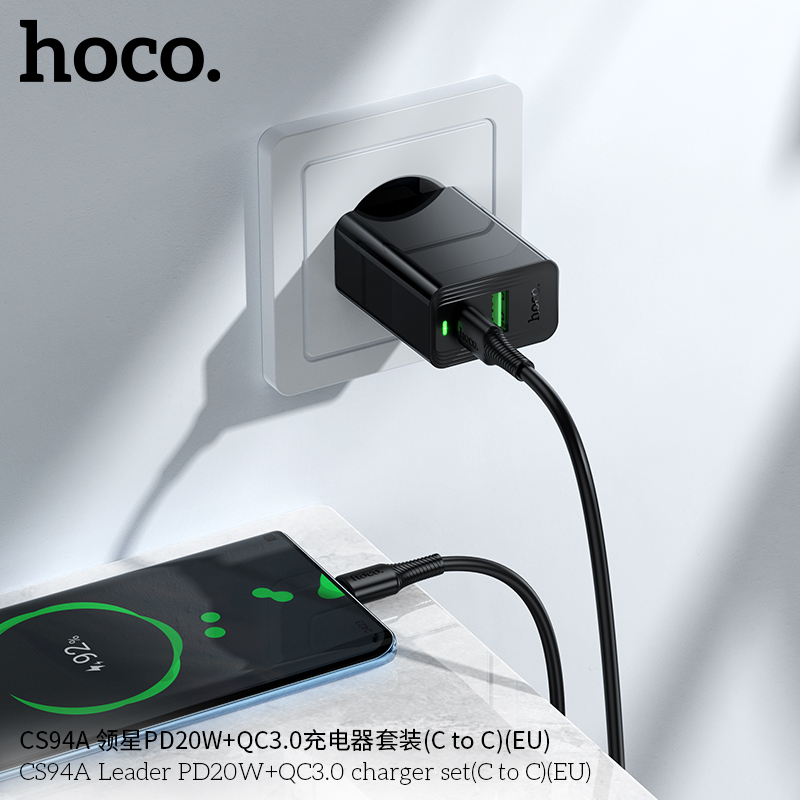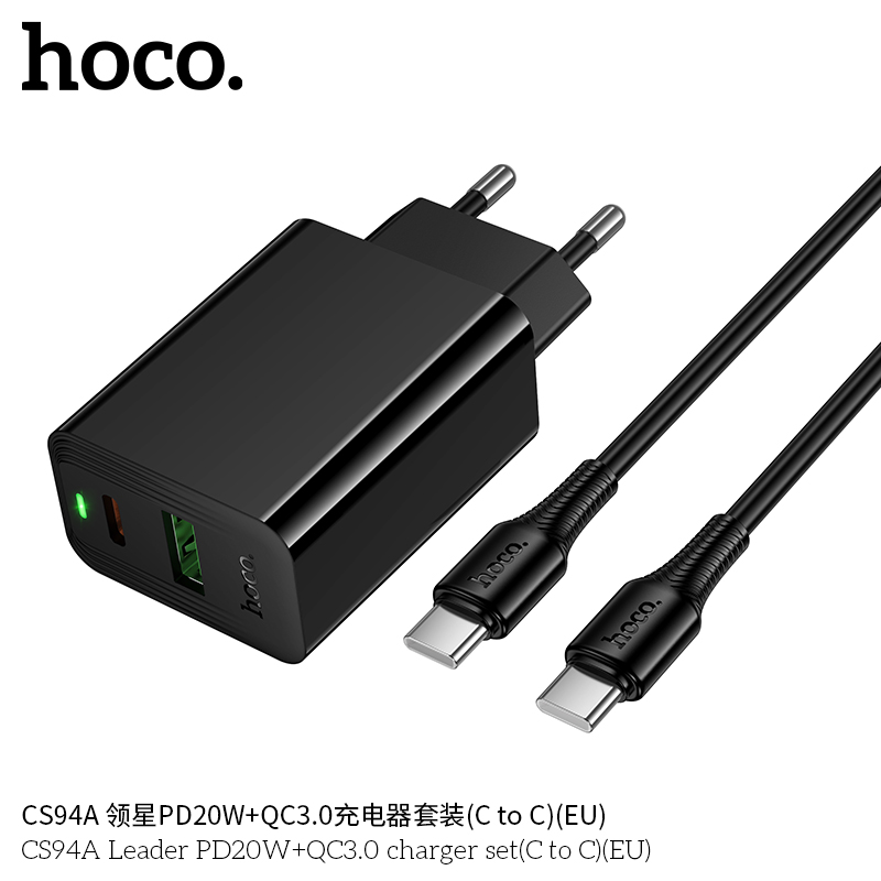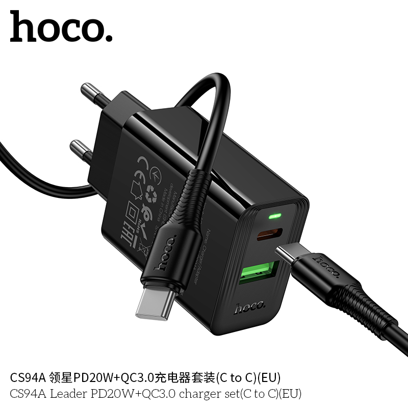 Mã sản phẩm: Bộ sạc Leader PD20W+QC3.0 Hoco CS94A MỚI (C sang C) (EU)