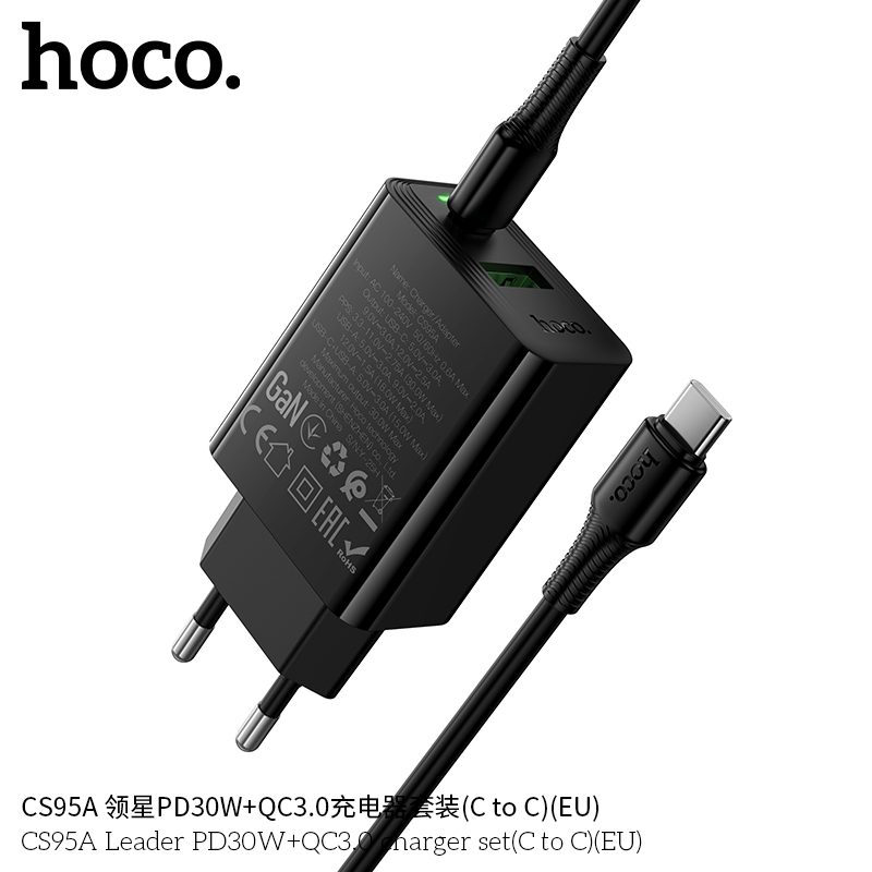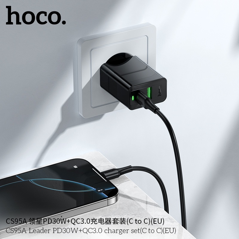 Mã sản phẩm: Bộ sạc Leader PD30W+QC3.0 Hoco CS95A MỚI (C sang C) (EU)