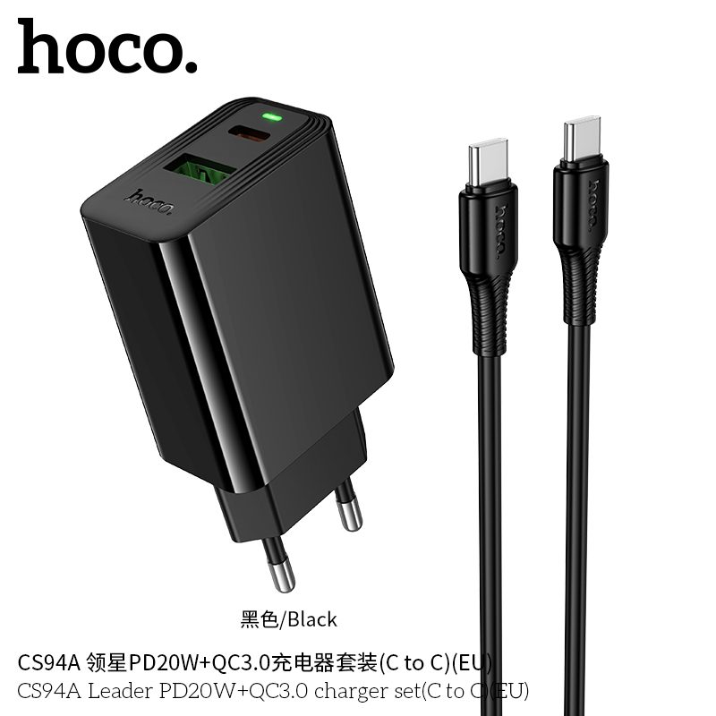 Bộ sạc Leader PD20W+QC3.0 Hoco CS94A MỚI (C sang C) (EU)