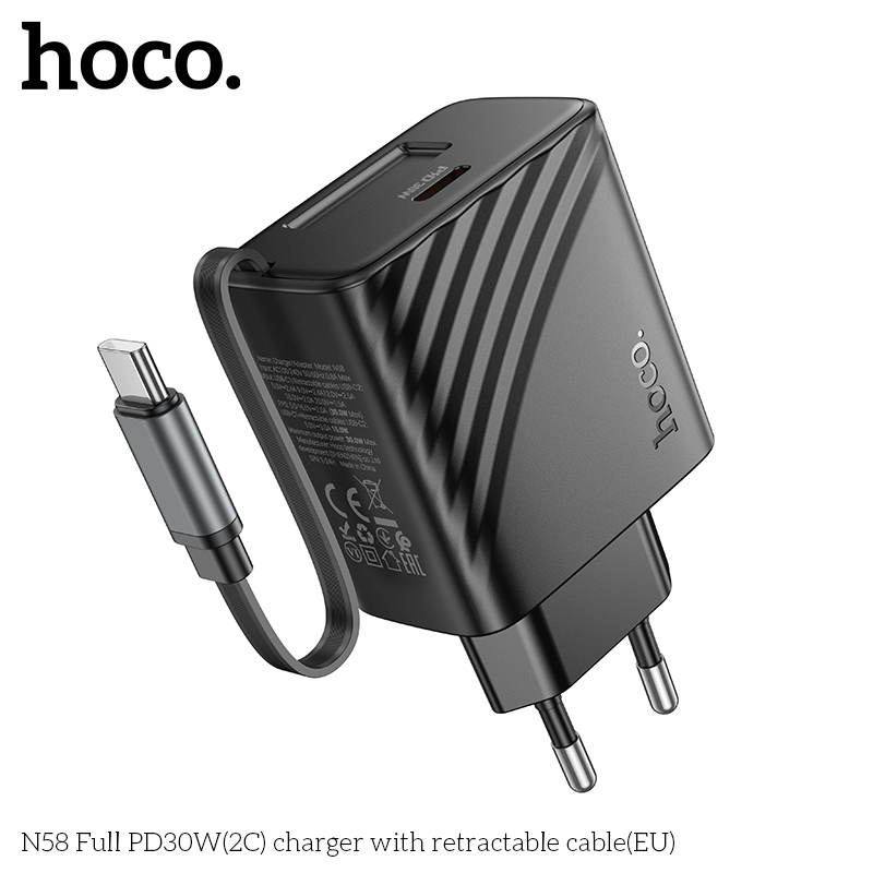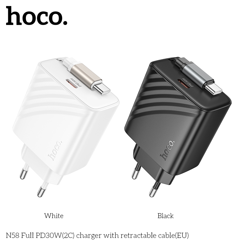 Bộ sạc Hoco N58 Full PD30W(2C) có cáp có thể thu vào (EU)