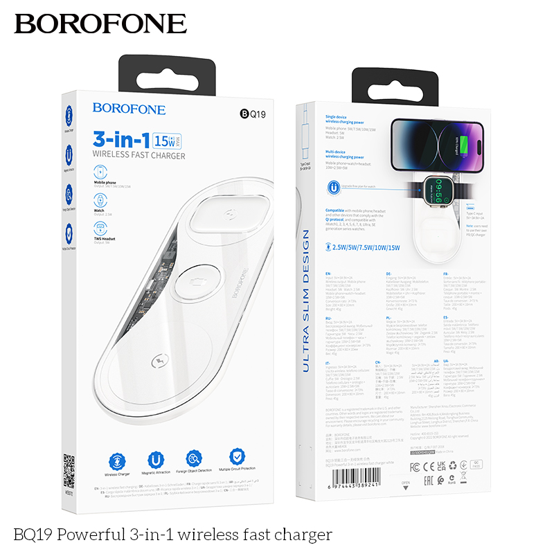 Bộ sạc nhanh không dây 3 trong 1 Borofone BQ19