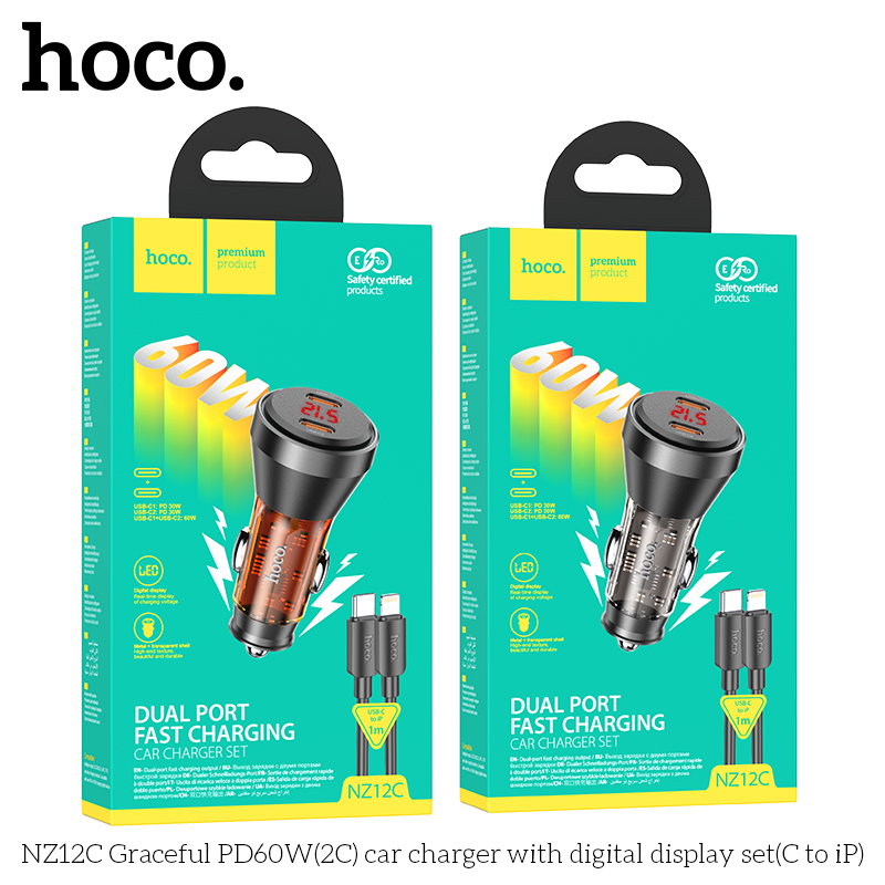 Bộ sạc xe hơi HOCO NZ12C Graceful PD60W(2C) với bộ màn hình kỹ thuật số (C đến iP)