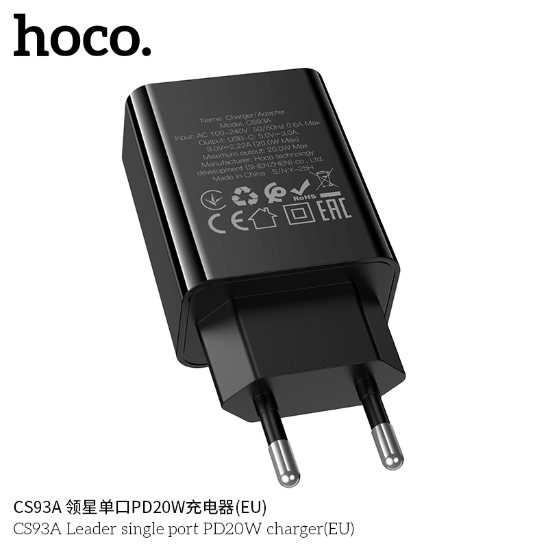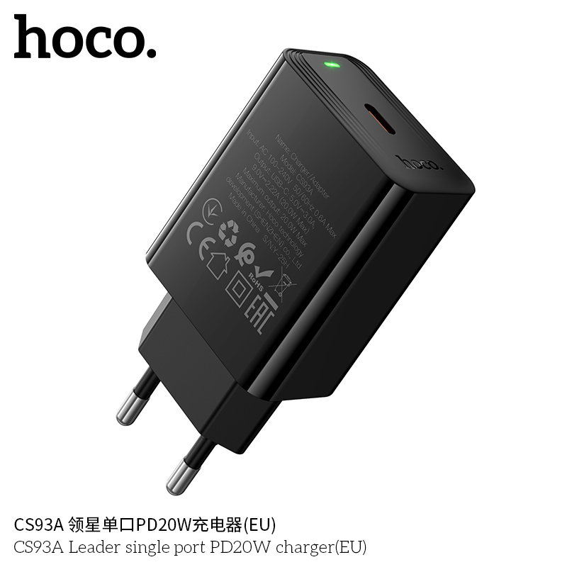 Mã sản phẩm: Bộ sạc PD20W một cổng Hoco CS93A Leader MỚI (C đến C) (EU)