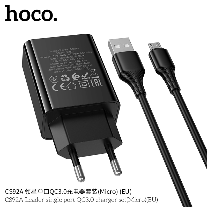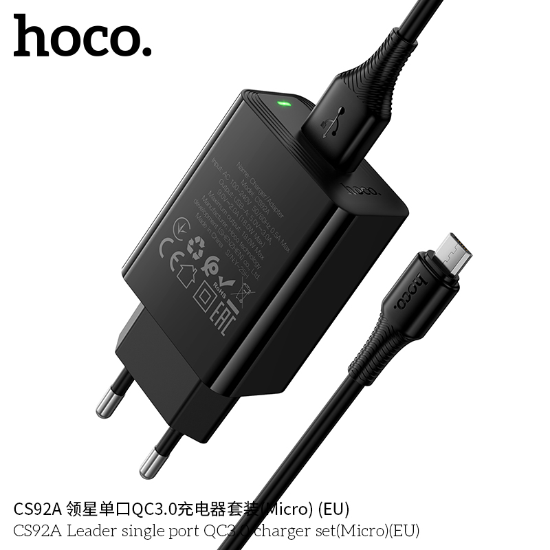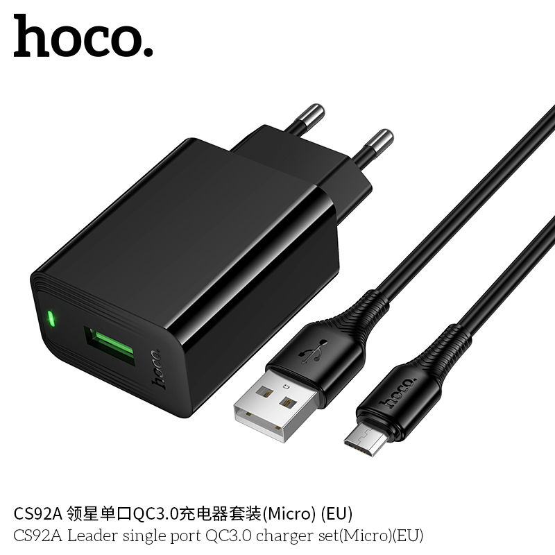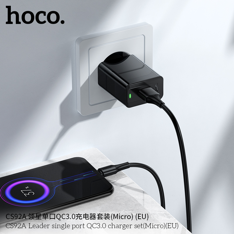 Mã sản phẩm: Bộ sạc QC3.0 một cổng Hoco CS92A Leader MỚI (Micro) (EU)