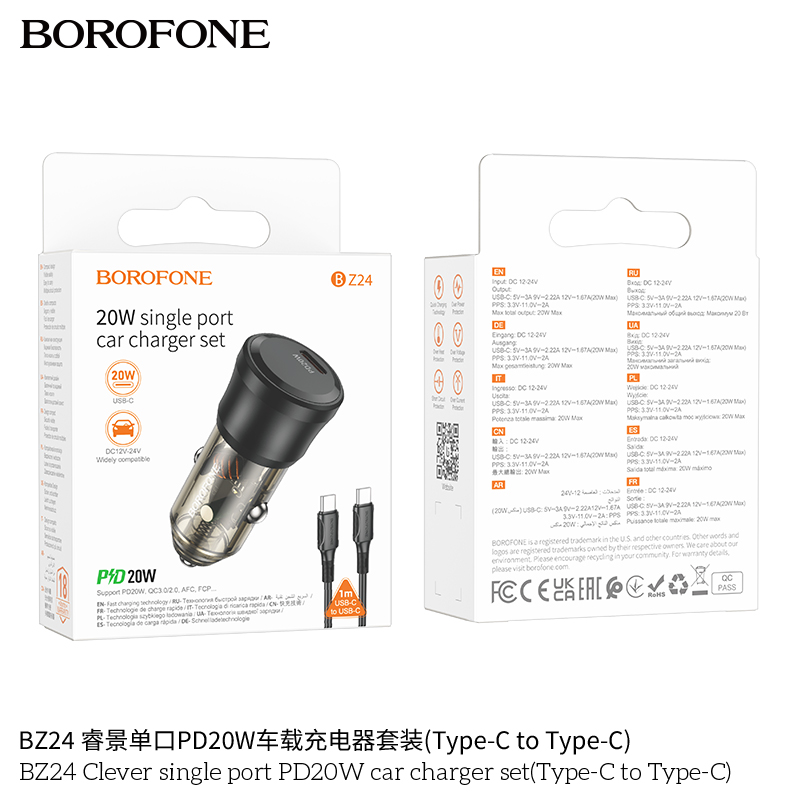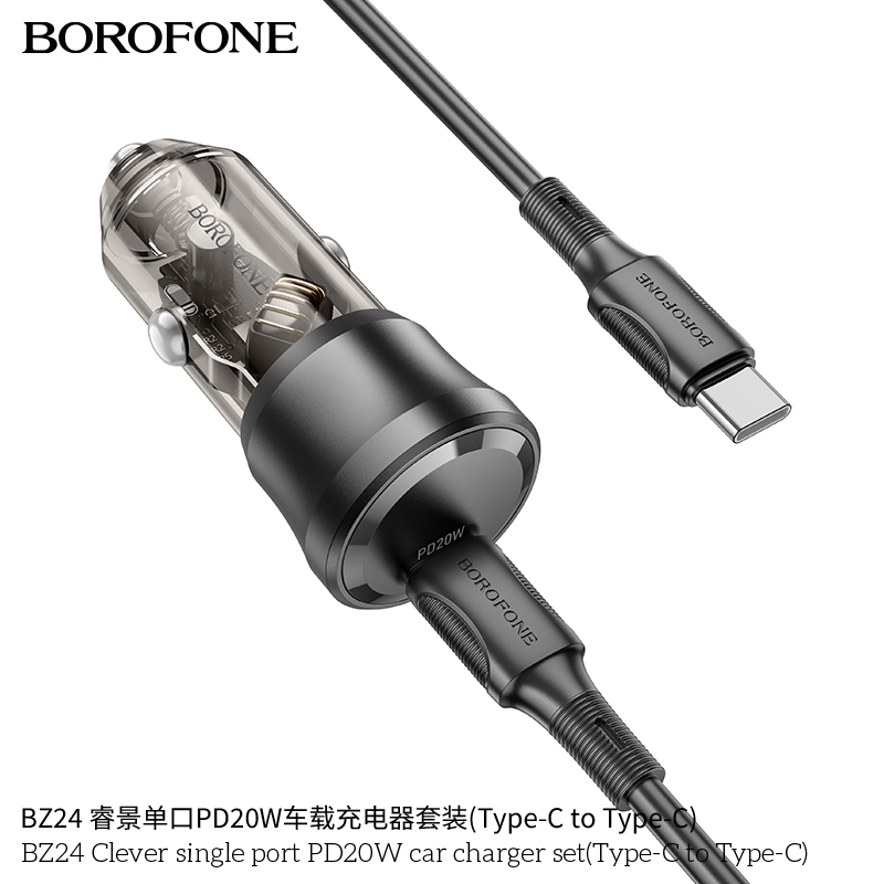 Bộ sạc xe hơi Borofone PD20W một cổng thông minh BZ24 (Type-C đến Type-C)