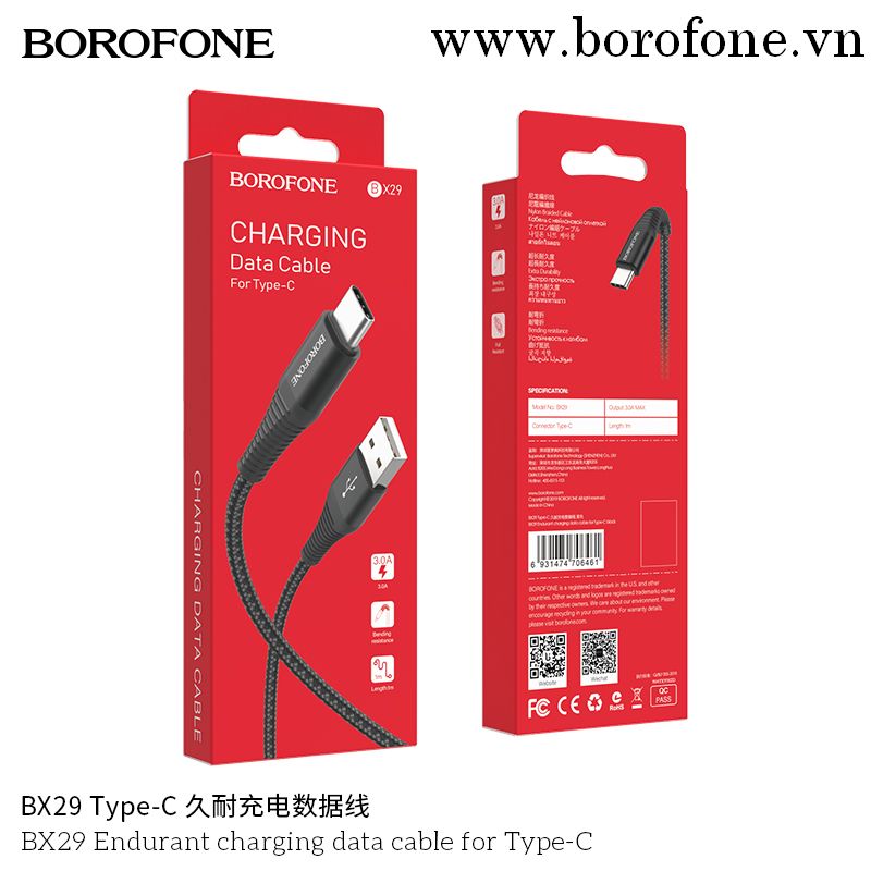 Cáp Sạc Truyền Dữ Liệu BOROFONE BX29 Cổng Type C 3A 1M