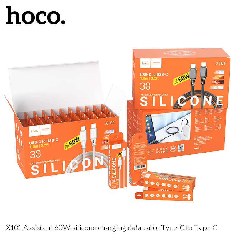 Cáp dữ liệu sạc silicon Hoco X101 Assistant 60W Type-C đến Type-C