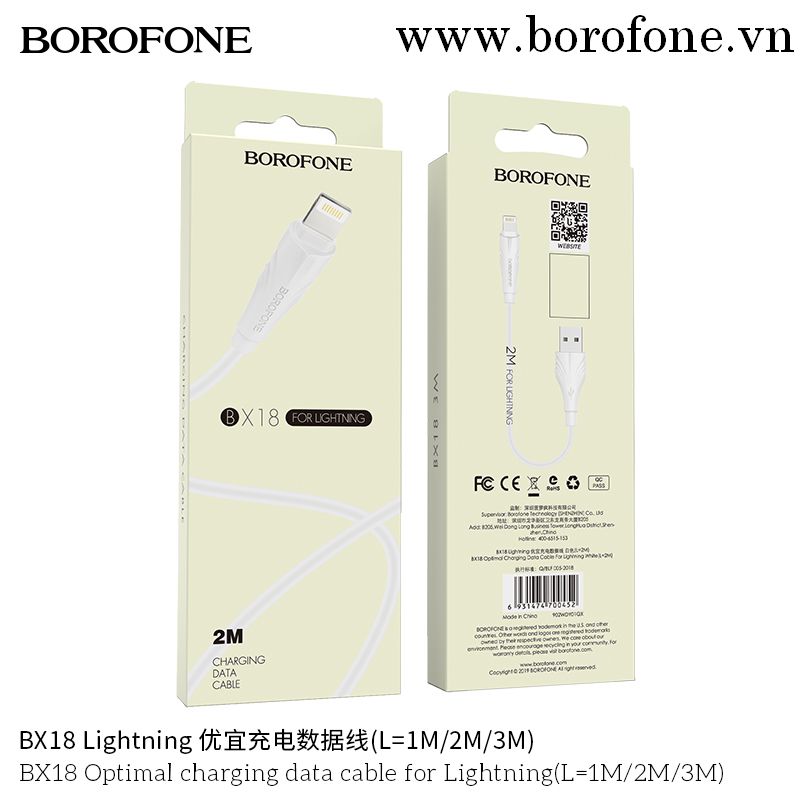 Cáp Sạc Truyền Dữ Liệu BOROFONE BX18 Cổng Lightning 2A 2M