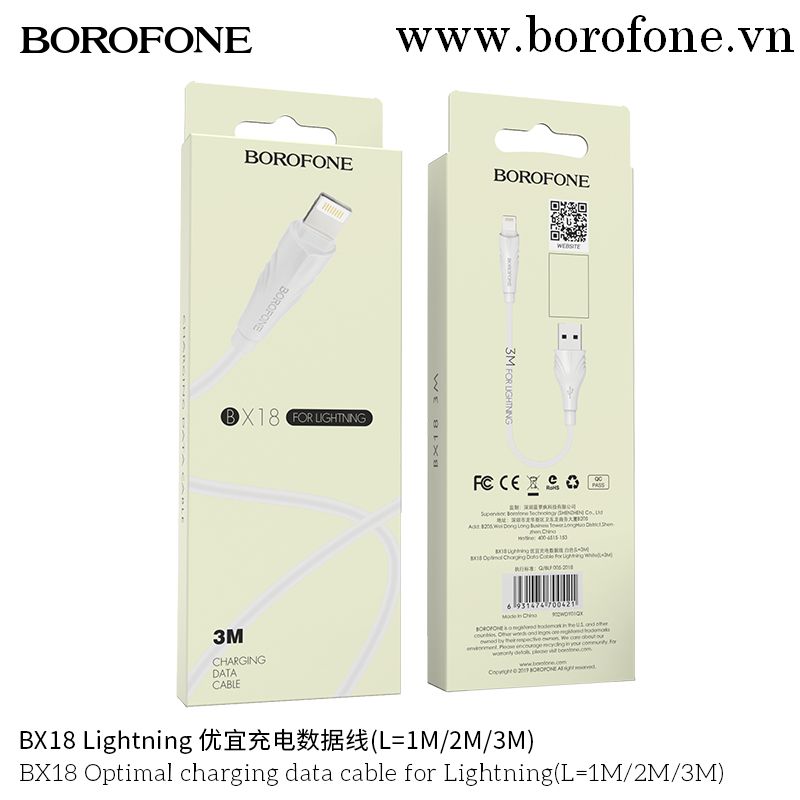 Cáp Sạc Truyền Dữ Liệu BOROFONE BX18 Cổng Lightning 2A 3M