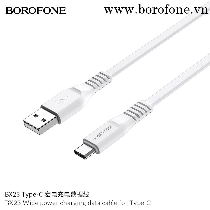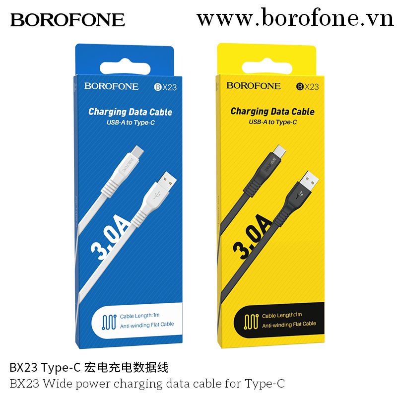 Cáp dữ liệu sạc công suất rộng BOROFONE BX23 cho USB-C aka Type-C, 1m, 3.0A, bện PVC, cáp phẳng