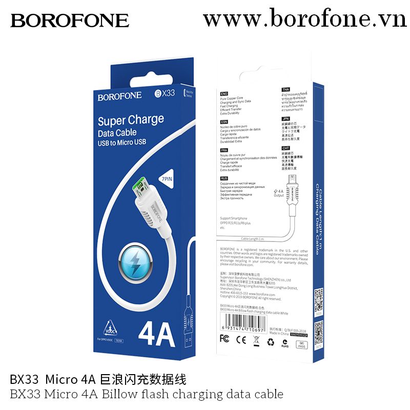 Cáp Sạc Nhanh BOROFONE BX33 Cổng Micro 4A 1.2M