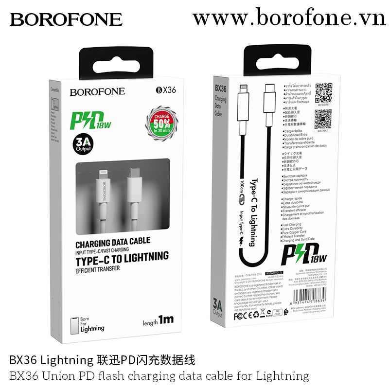 Cáp Sạc Nhanh Truyền Dữ Liệu BOROFONE BX36 Type-C To Lightning 1M