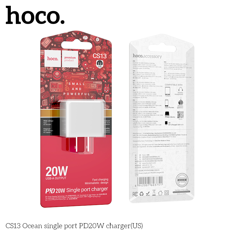 Cốc sạc Hoco PD20W cổng đơn CS13A Ocean (EU)