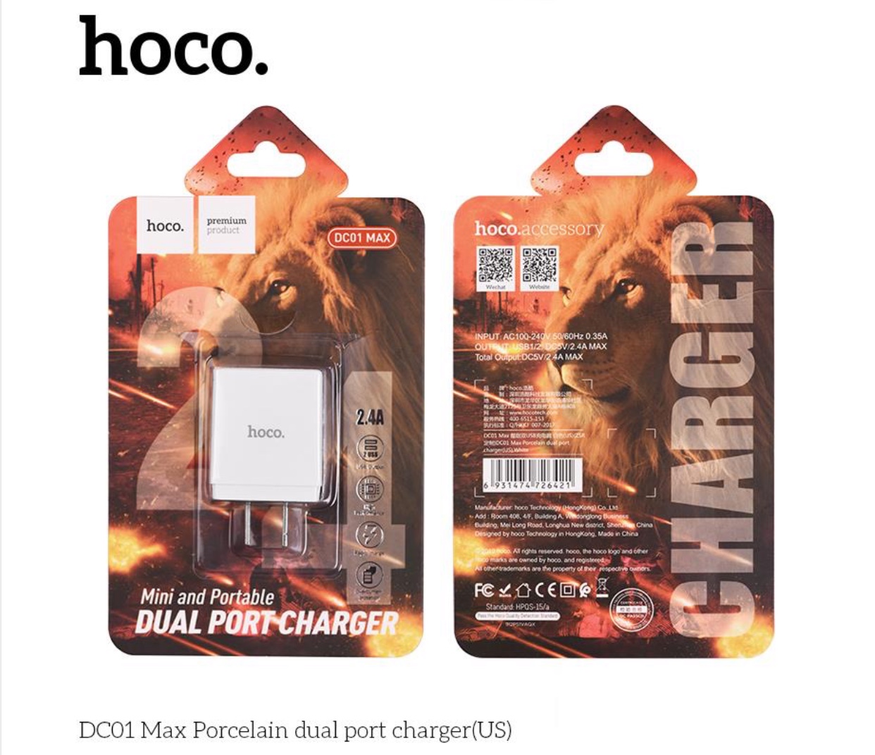 CỐC SẠC NHANH HOCO C33 2.4A 2 CỔNG GIÁ VIP