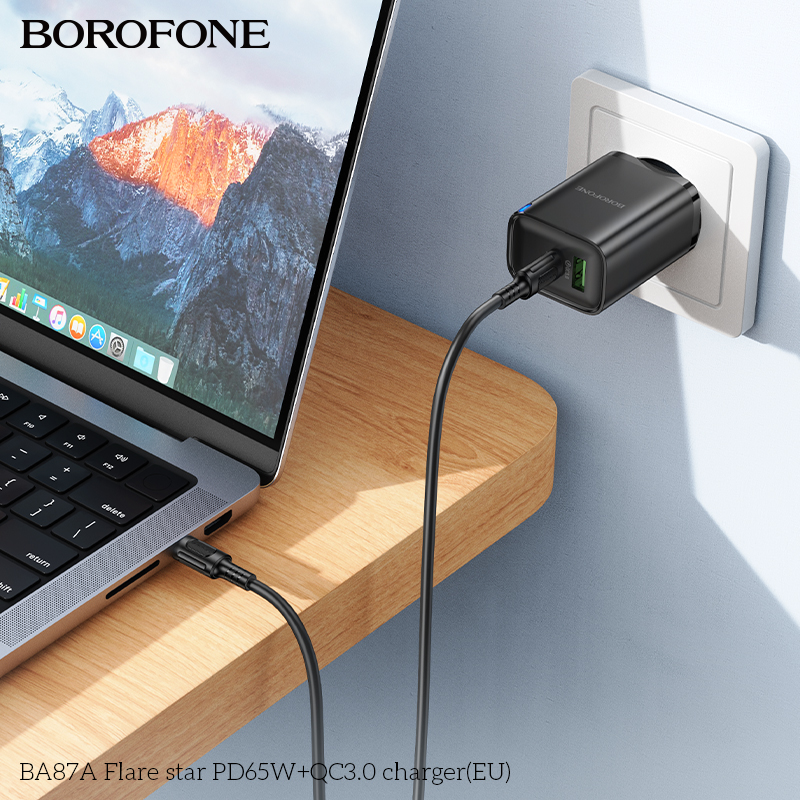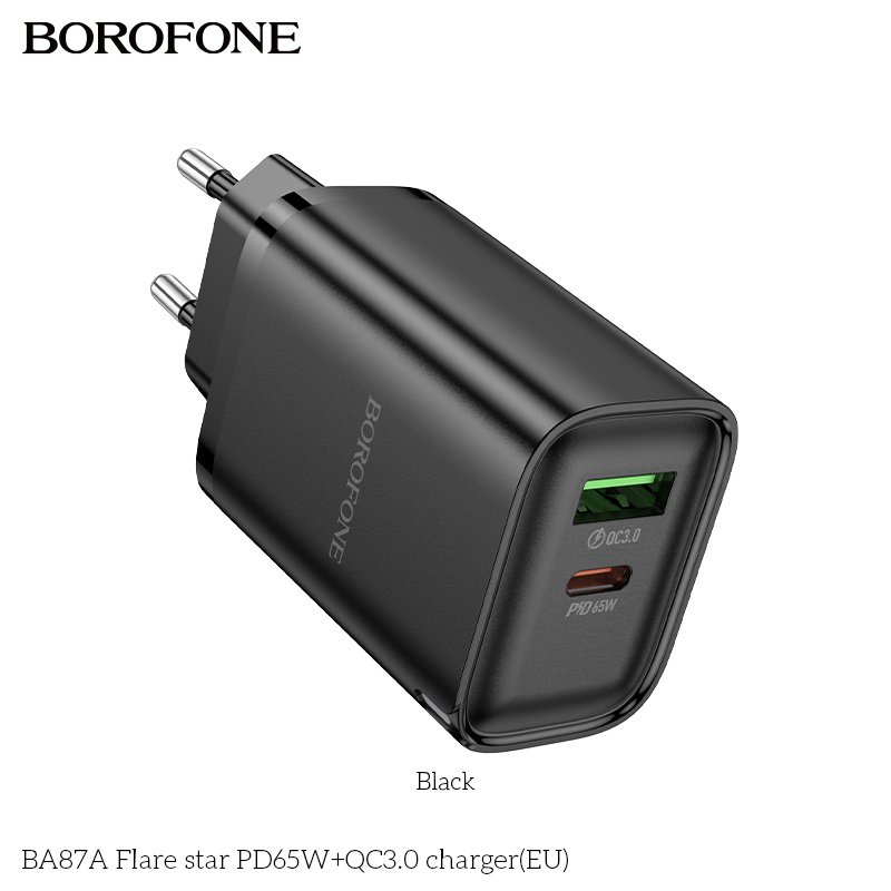 2. Đầu ra: USB-C: 65W (PD/QC/FCP/AFC); USB-A:18W(QC/FCP/AFC); USB-C+USB-A=45W+18W 3. phích cắm EU 4. Kích thước: 91,8 * 42,3 * 30mm; Trọng lượng: 93g 5. Cáp: BX111 C đến C 100W, màu đen pha đen/trắng pha trắng, chiều dài cáp L=1.0M, tổng trọng lượng: 118g
