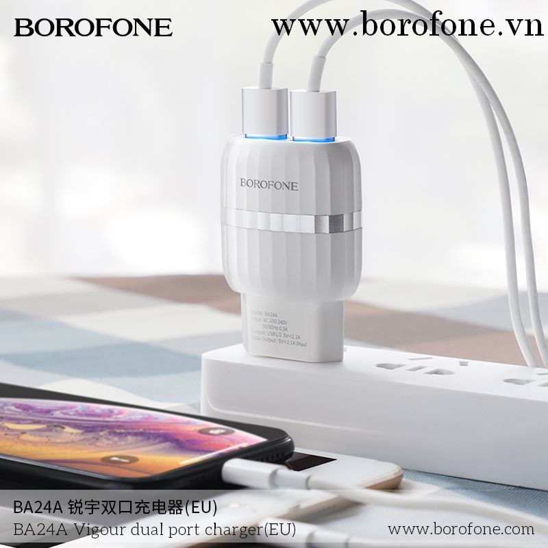 CỐC SẠC BOROFONE BA24A - 2 CỔNG USB