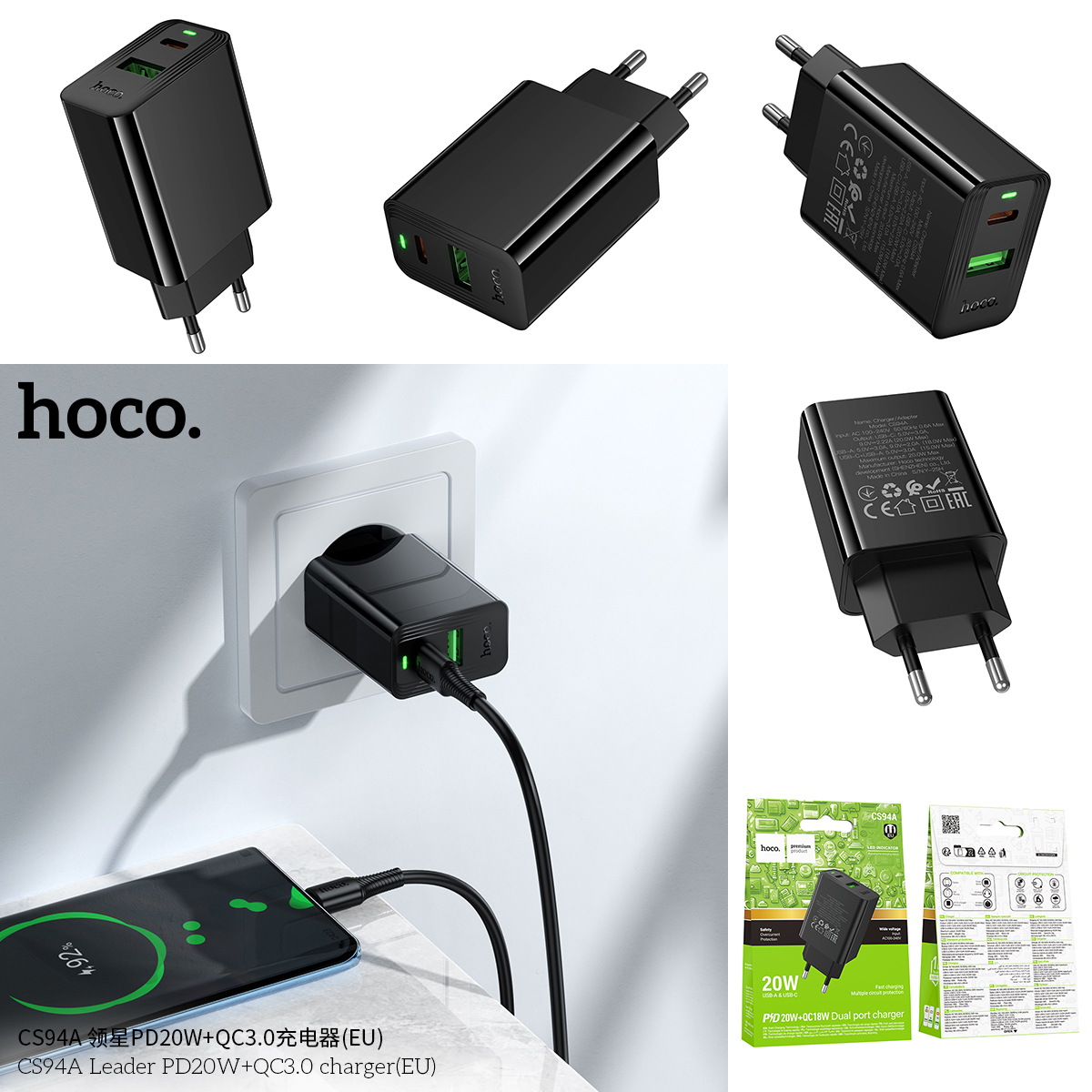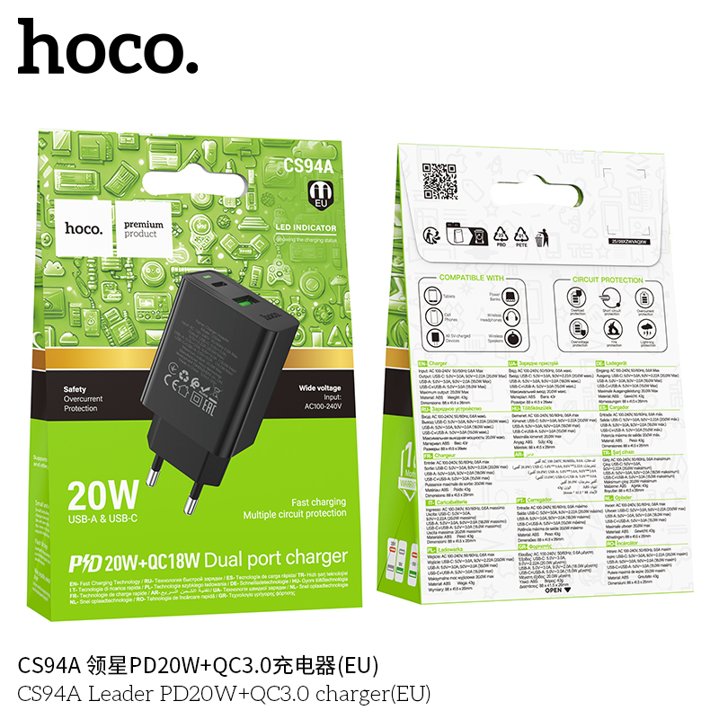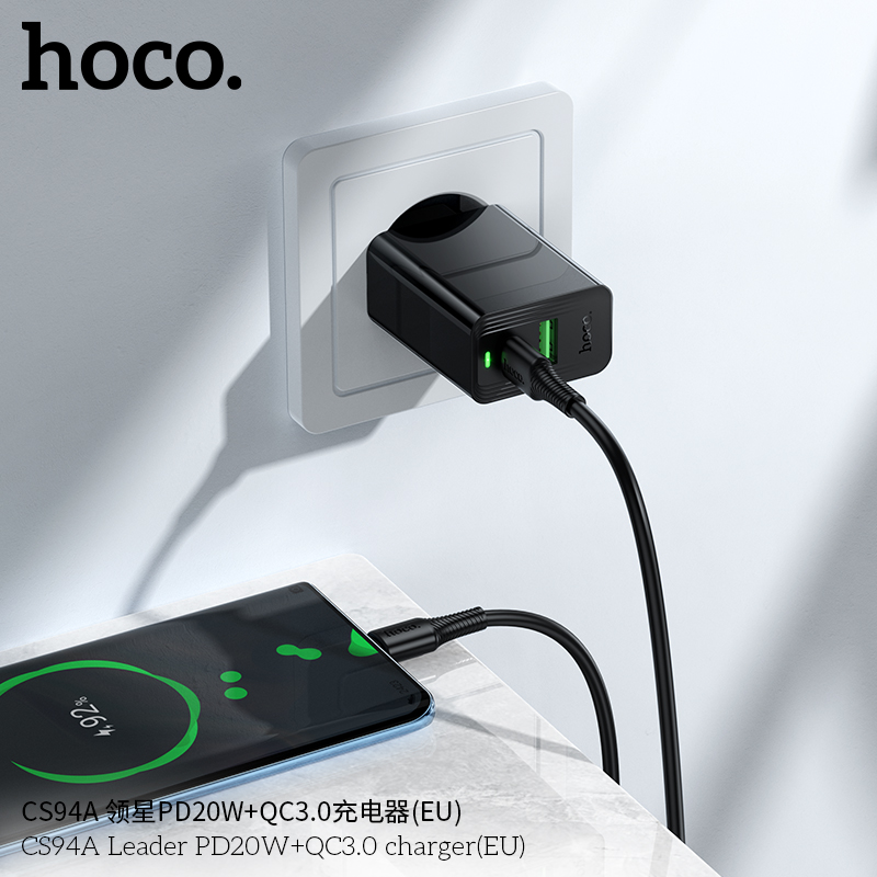 Mã sản phẩm: Cốc sạc Hoco CS94A Leader PD20W+QC3.0 MỚI (EU)