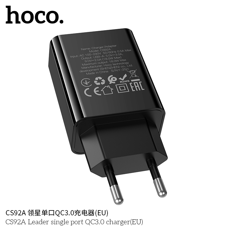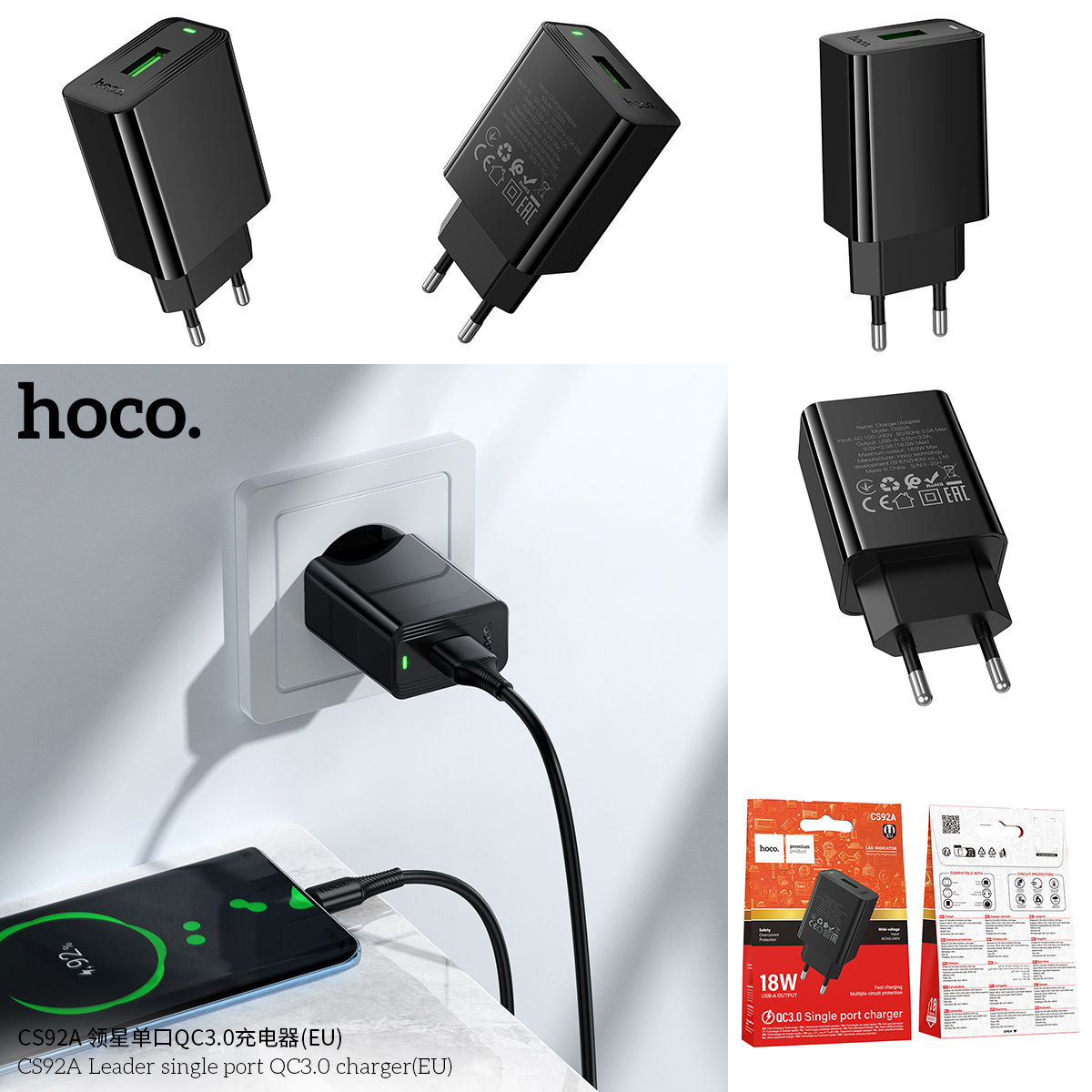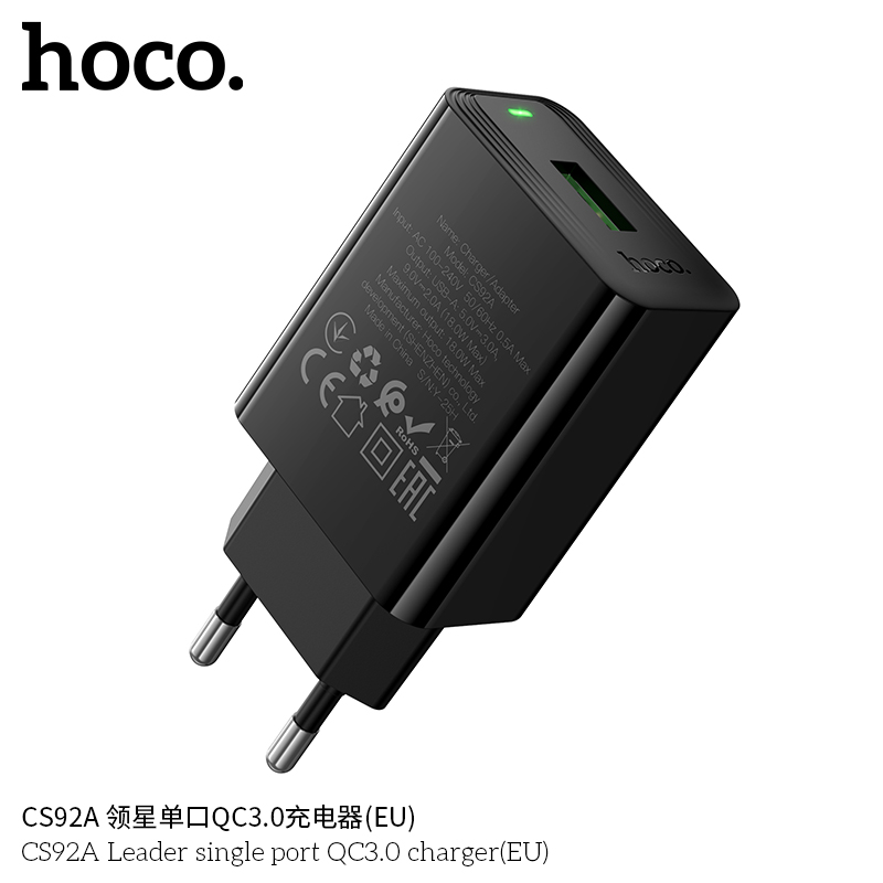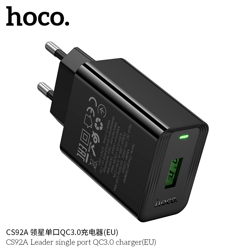 Bộ sạc QC3.0 một cổng Hoco CS92A Leader MỚI (Loại C) (EU)
