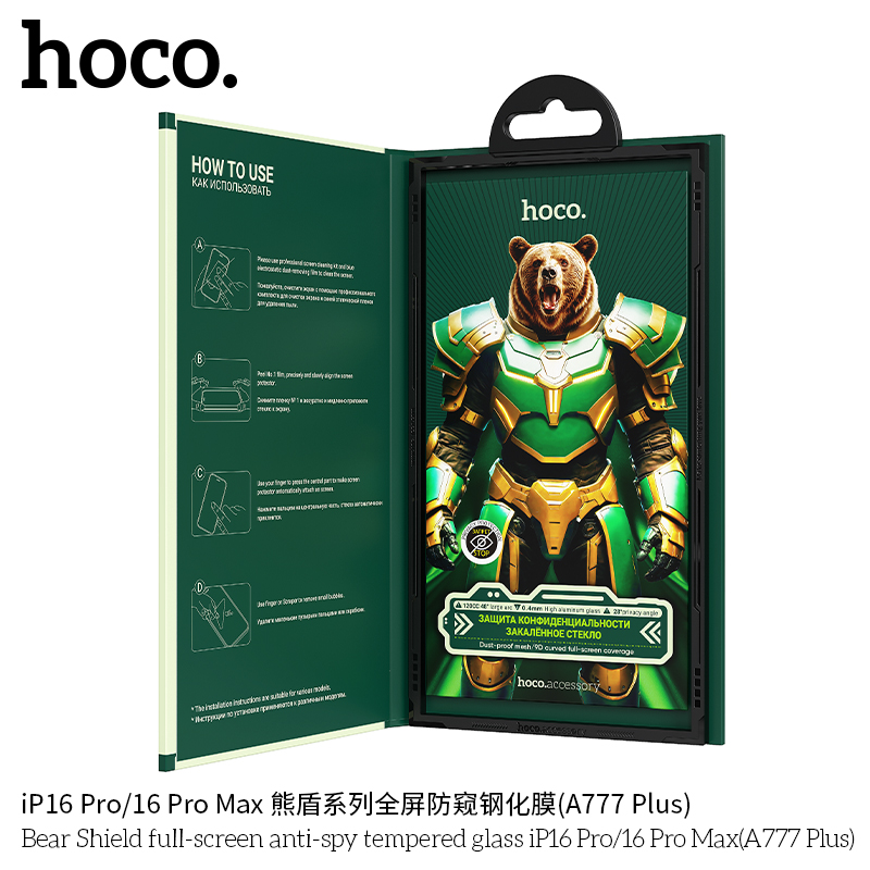 Kính cường lực Hoco chống nhìn trộm toàn màn hình Bear Shield iP16 Pro (A777 Plus)