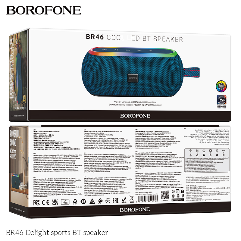 2. Dung lượng pin: 2400mAh; Thời gian sạc: 3 giờ 3. Thời gian sử dụng: 4 giờ 4. Bộ loa: 52mm*2, công suất: 5W*2 5. Kích thước: 203,3 * 78,3 * 68mm; Trọng lượng: 635g 6. Hỗ trợ Bluetooth, FM, thẻ TF, đĩa USB, Aux,TWS và các chế độ khác