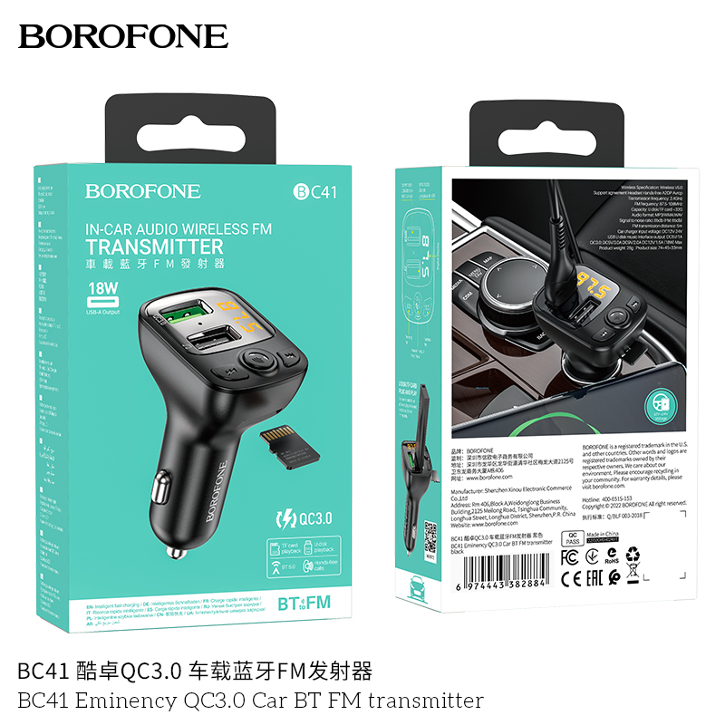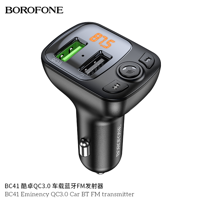 Máy phát FM BT xe hơi Borofone BC41 Eminency QC3.0