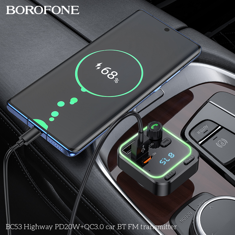 Máy phát FM BT xe hơi BOROFONE BC53 Highway PD20W+QC3.0