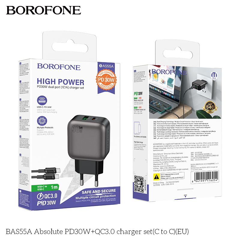 Bộ sạc BAS55A PD30W+QC3.0 (C to C)(EU)