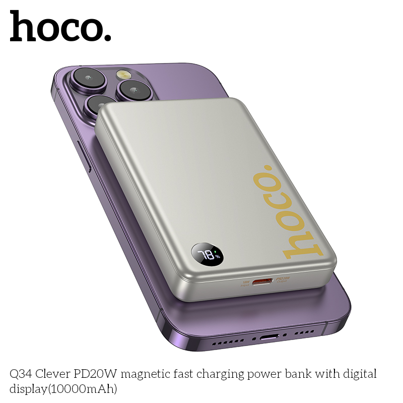 Sạc dự phòng từ tính nhanh Hoco Q34 PD20W màn hình kỹ thuật số (10000mAh)
