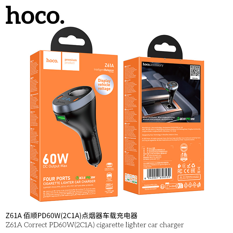 Tẩu sạc bật lửa ô tô HOCO Z61A Correct PD60W(2C1A)