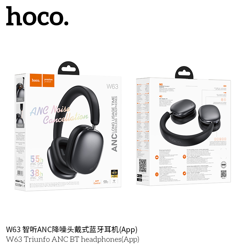 Tai nghe Bluetooth Hoco W63 Triunfo ANC MỚI (Ứng dụng)