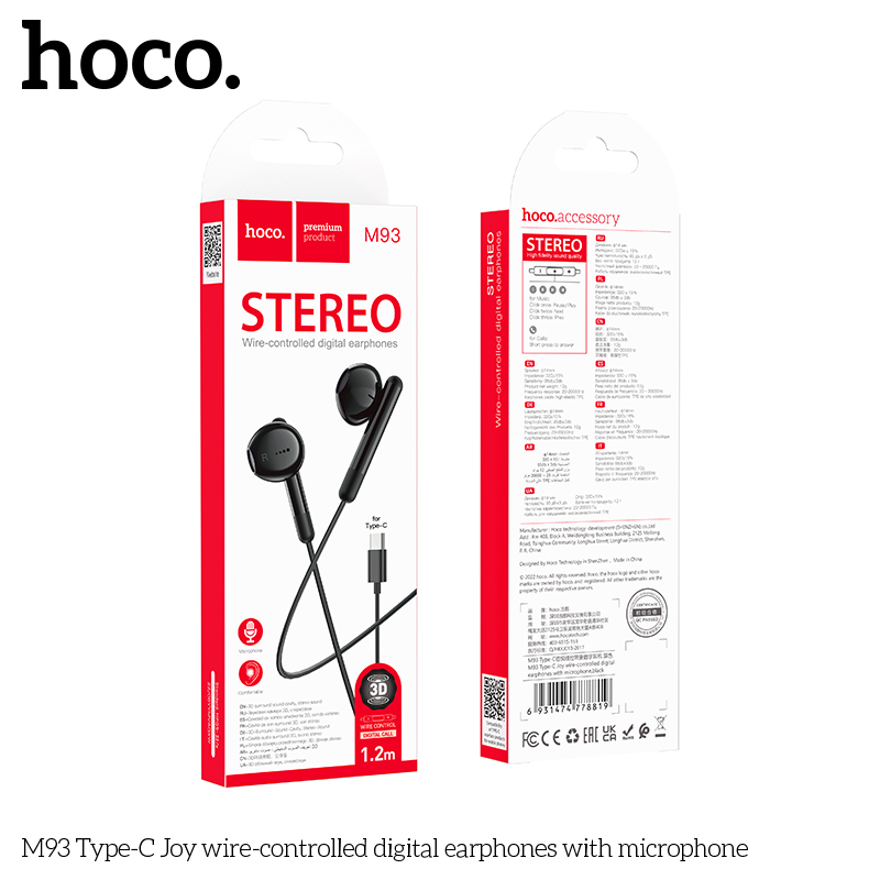 Tai nghe dây Hoco M93 Type-C Joy wire-controlled digital earphones with microphone