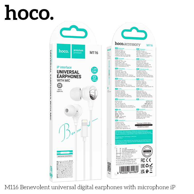 Tai nghe kỹ thuật số phổ thông Benevolent Hoco M116 có micro iP